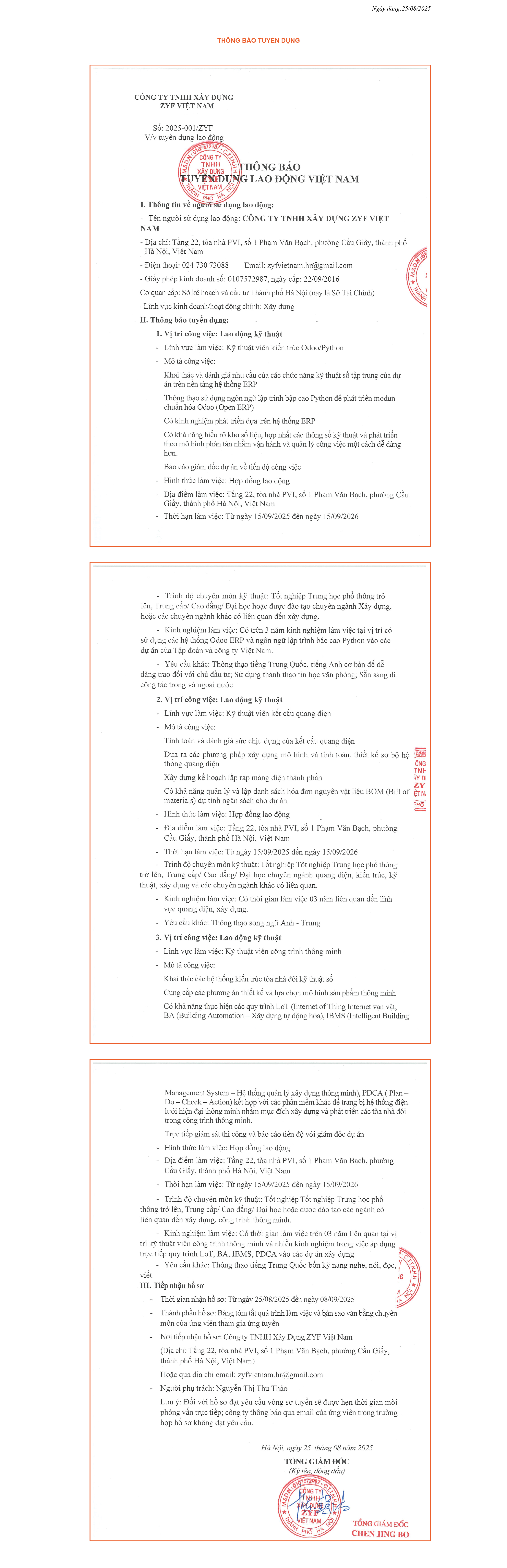 Trang chủ Tin tức THÔNG BÁO TUYỂN DỤNG 25/08/2025 Ngày đăng : 12:04:00 05-09-2025 Tags: , Bình luận bằng tài khoản facebook Bình luận bằng tài khoản Google